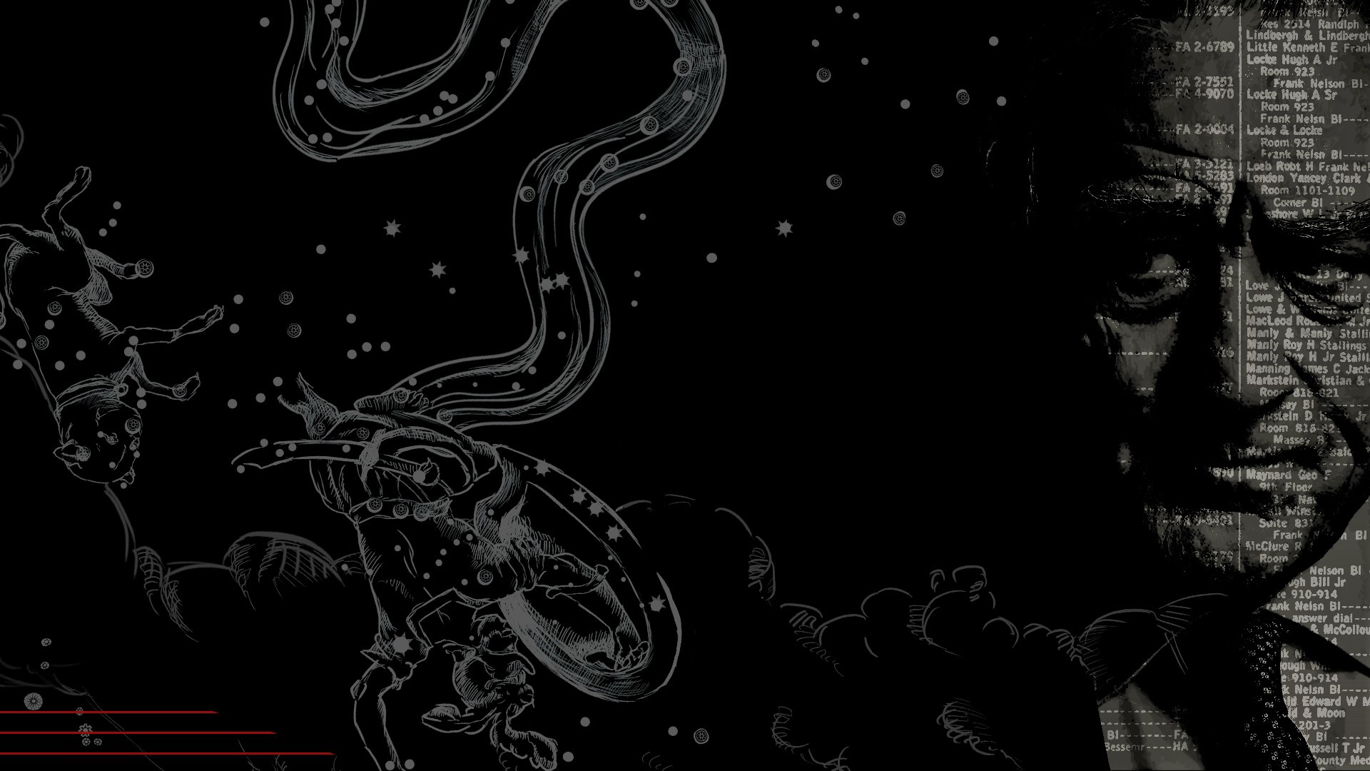 Изображение главного героя фильма "Стажёр" с права и созвездий "Эрида", "Малый пёс", "Орион" с лева, млечный пусть по центру